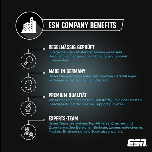Be the first to review “ESN Omega-3, 60 Kapseln, hochdosiertes EPA & DHA, unterstützt Herz, Gehirn & mehr, 1200 mg EPA & 900 mg DHA pro Portion, regelmäßig geprüft – made in Germany”