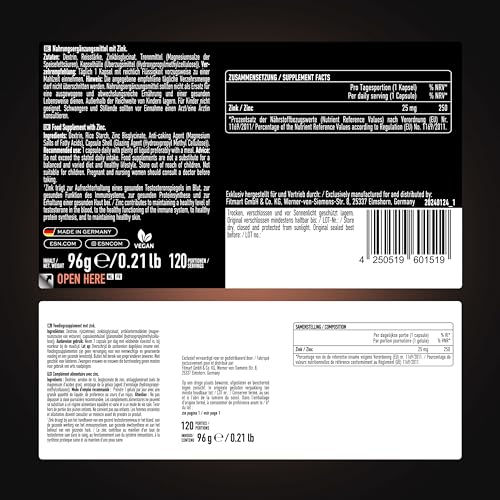 Details: ESN Zinc, 120 Kapseln, Zinkbisglycinat, 25 mg Zink pro Kapsel, für dein Immunsystem, vegan, geprüfte Qualität – made in Germany