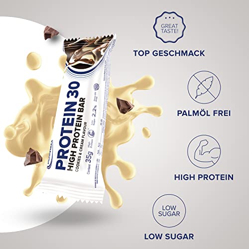 IronMaxx Protein 30 Eiweißriegel – Cookies and Cream, 24 x 35g | palmölfreier Proteinriegel mit Vitaminen | für zuckerreduzierte und Low-Carb-Ernährung geeignet