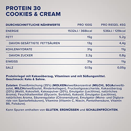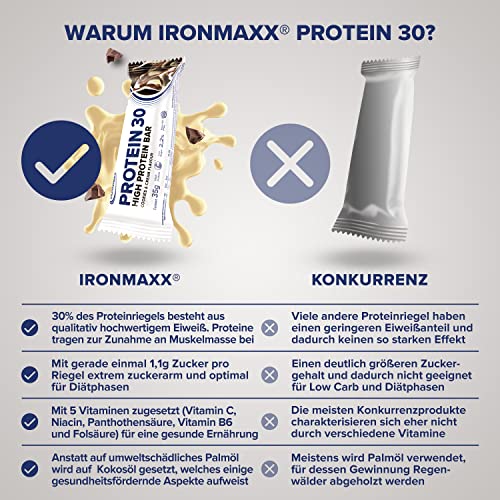 Details: IronMaxx Protein 30 Eiweißriegel – Cookies and Cream, 24 x 35g | palmölfreier Proteinriegel mit Vitaminen | für zuckerreduzierte und Low-Carb-Ernährung geeignet