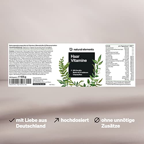 Details: Haar Vitamine – 180 Kapseln – hochdosiert mit Keratin, Biotin, Selen, Zink, Hirseextrakt, B-Vitaminen & mehr – für Haare, Haut & Nägel – in Deutschland produziert & laborgeprüft