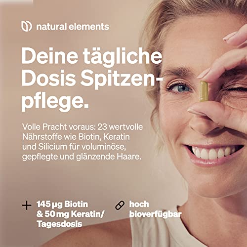 ELEMENTAR EFFEKTIV | *Biotin, Zink und Selen versteifen zum Erhalt normaler Haare bei. Selen trägt zum Erhalt normaler Nägel bei. Zink trägt zum Erhalt normaler Haut bei.