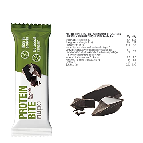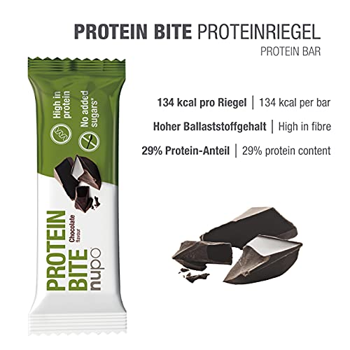 Details: NUPO Protein Bite – Schokolade I Fitness Proteinriegel mit niedrigem Zuckergehalt I 24 x 40g I High Protein (29%) & Low Carb (134 kcal)